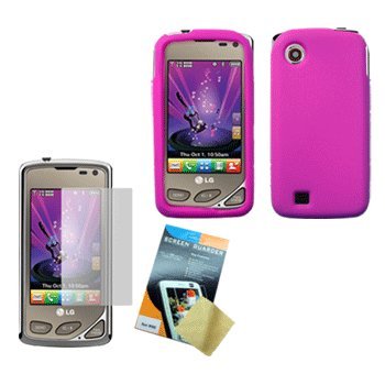 Hot Pink Silicone Case / Skin / Cover & LCD Screen Guard / Protector for LG Chocolate Touch VX8575 / VX-8575 Complete